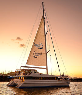 Sail into the evening aboard the Spirit of Cairns catamaran. Enjoy calm-water cruising through Trinity Inlet with panoramic views of rainforest mountains and city lights. Indulge in a three-course dinner featuring fresh local produce, plus a welcome drink on arrival.